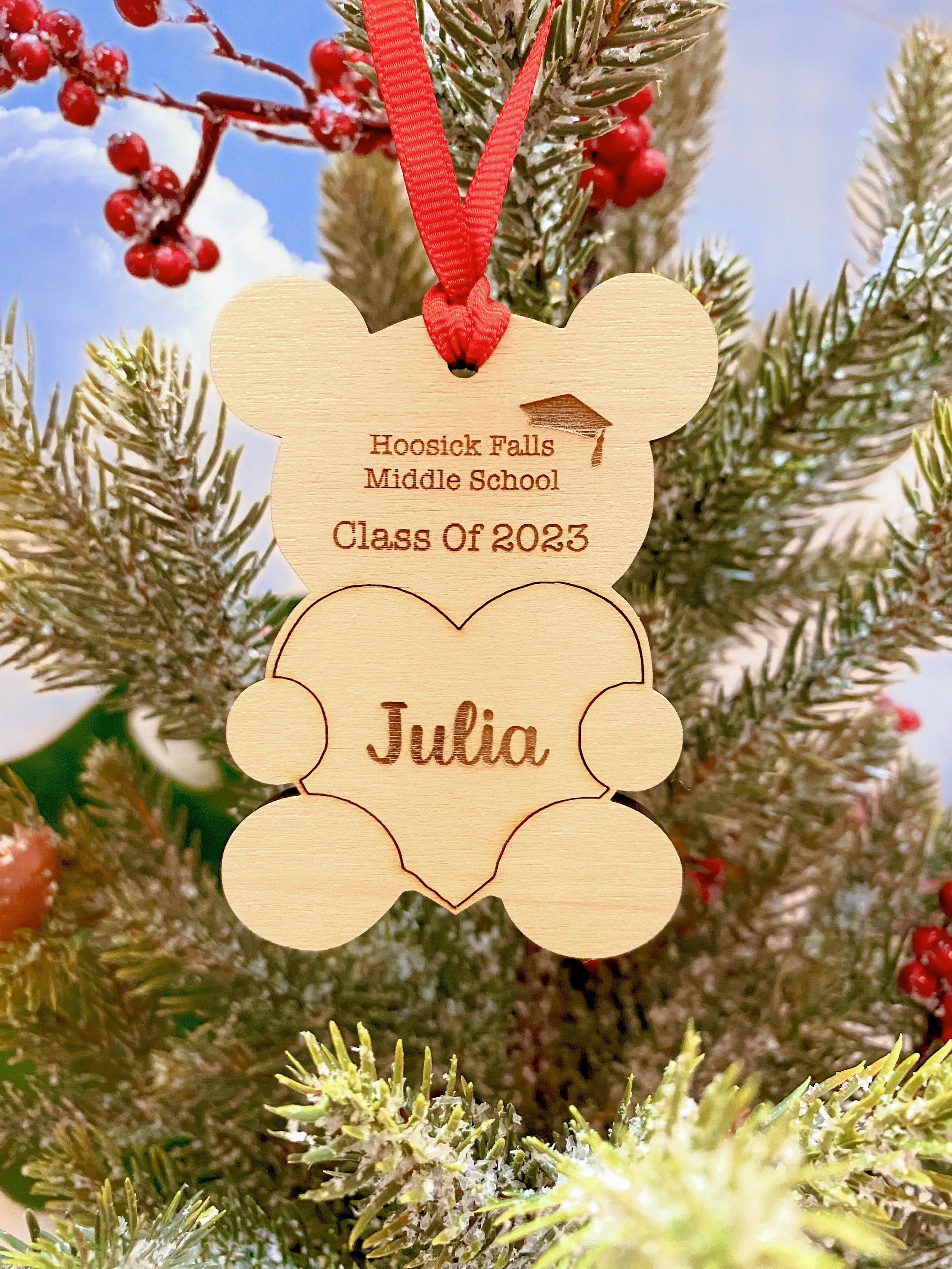 Personalized Graduation Ornament Engraved Wooden Teddy Bear Etsy