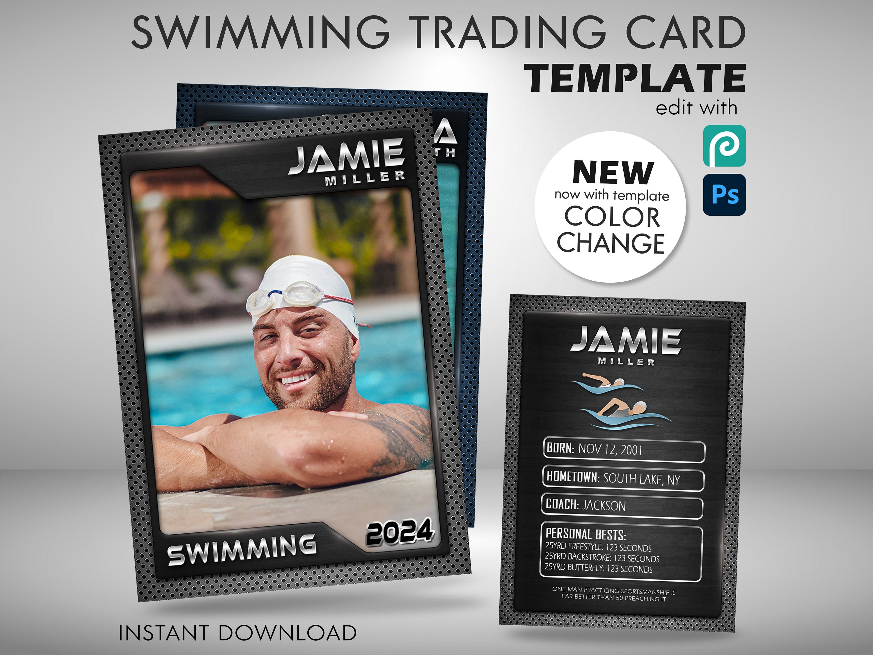 Custom Swimming Trading Card Template Water Sports Diving Etsy